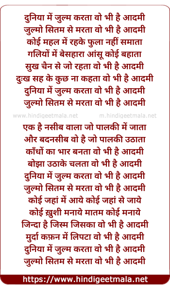 Poetic Translation - Lyrics of Wo Bhi Hai Aadmi - वो भी है आदमी