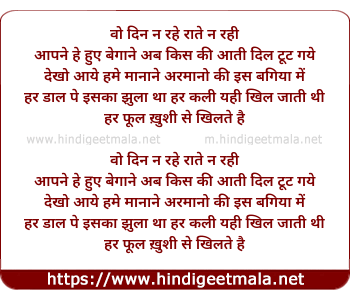 Lyrics of Wo Din Na Rahe Rate Na Rahe