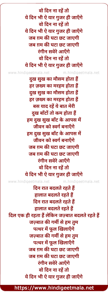 Lyrics of Wo Din Na Rahe To - वो दिन ना रहें तो