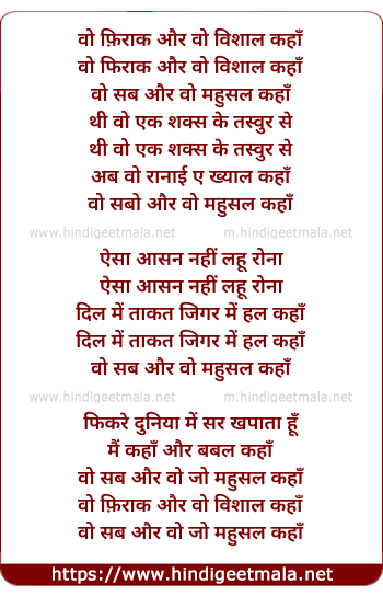 Lyrics of Wo Firaq Or Wo Visal Kaha - वो फ़िराक और वो विशाल कहाँ