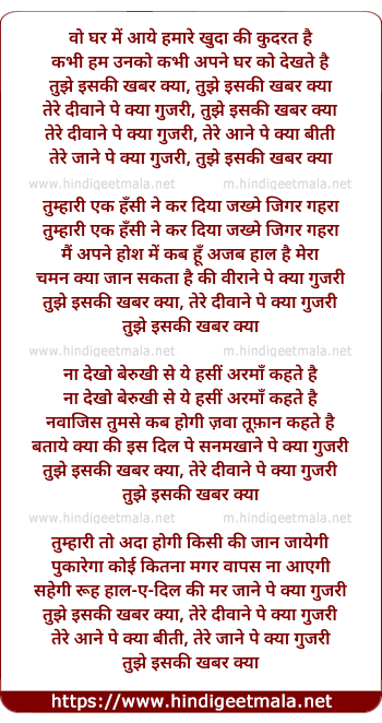 tere deewane pe kya gujari, tujhe iski khabar kya