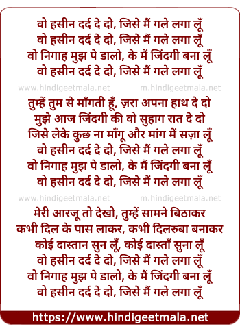 Lyrics of Wo Haseen Dard De Do - वो हसीन दर्द दे दो, जिसे मैं गले लगा लूँ
