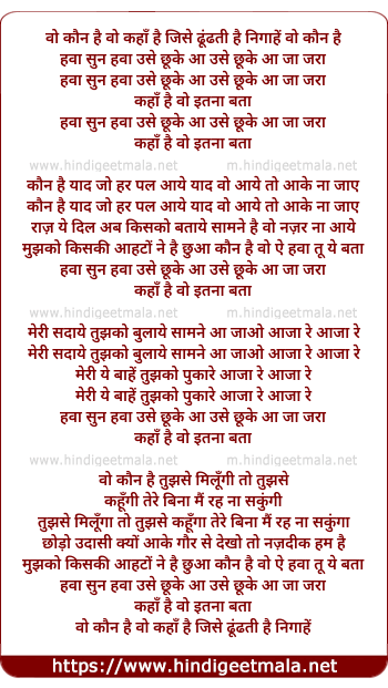 Lyrics of Wo Kaun Hai Wo Kahan Hai Jise Dhundti Hai Nigahe - वो कौन है वो कहाँ है जिसे ढूंढती है निगाहें