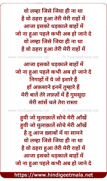 Lyrics of Wo Lamha Jise Jiya Hi Na Tha - वो लम्हा जिसे जिया ही ना था