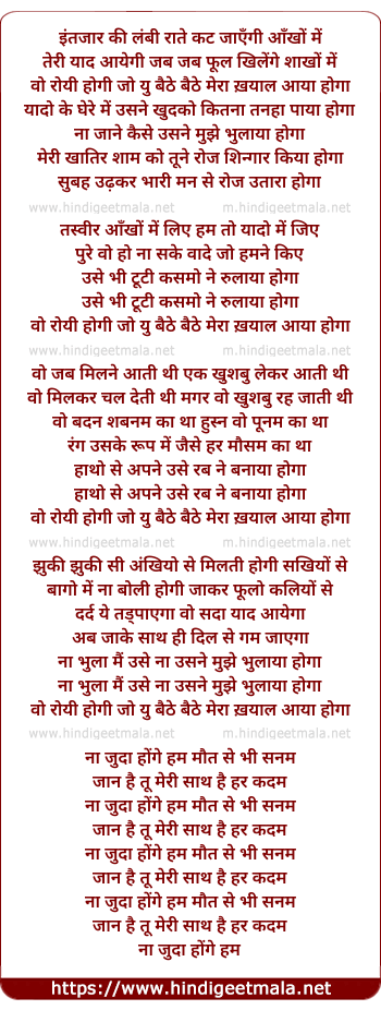 Lyrics of Wo Royi Hogi - वो रोयी होगी
