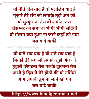 Lyrics of Woh Bite Din Yaad Hai - वो बीते दिन याद है