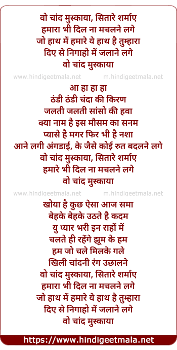 Lyrics of Woh Chand Muskaya, Sitare Sharmaye - वो चांद मुस्काया, सितारे शर्माए
