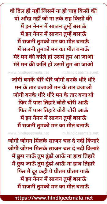 Lyrics of Woh Dil Hi Nahi Jis Me, Na Ho Chaah Kisi Ki - वो दिल ही नहीं जिसमें ना हो चाह किसी की