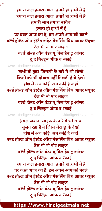 Poetic Translation - Lyrics of World Hold On - वर्ल्ड होल्ड ऑन