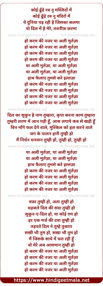 Lyrics of Ya Ali Murtaza (Qawwali) - कोई ढूँढे रब नु मस्जिदों में