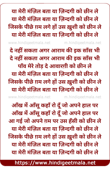 Lyrics of Ya Meri Manzil Bata Ya Jindgi Ko Chhin Le - या मेरी मंज़िल बता या ज़िन्दगी को छीन ले
