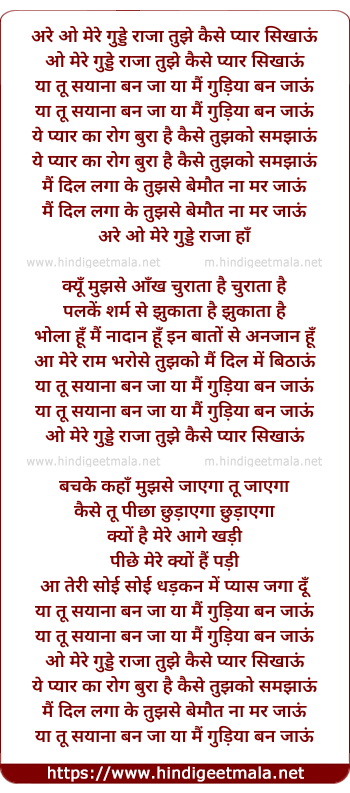 Lyrics of Ya Tu Sayana Ban Ja Ya Main Gudhiya Ban Jau - या तू सयाना बन जा या मैं गुड़िया बन जाऊं