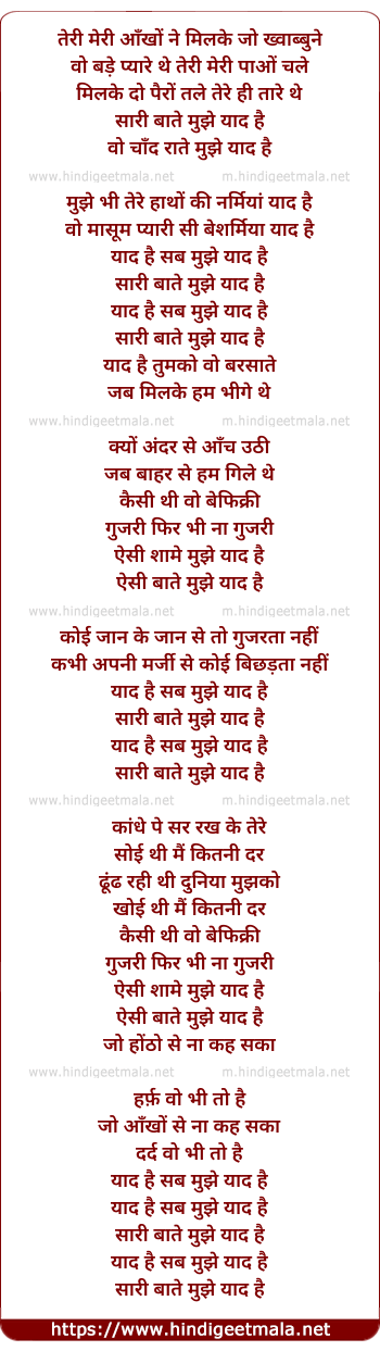 Lyrics of Sari Bate Mujhe Yaad Hai - सारी बातें मुझे याद है