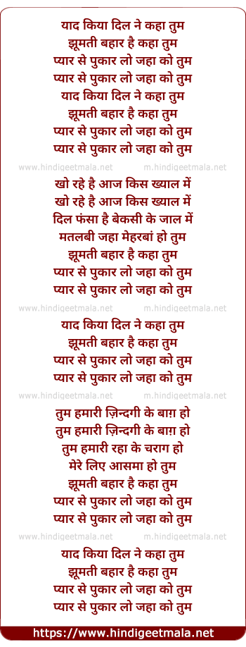 Lyrics of Yaad Kiya Dil Ne Kaha - याद किया दिल ने कहा