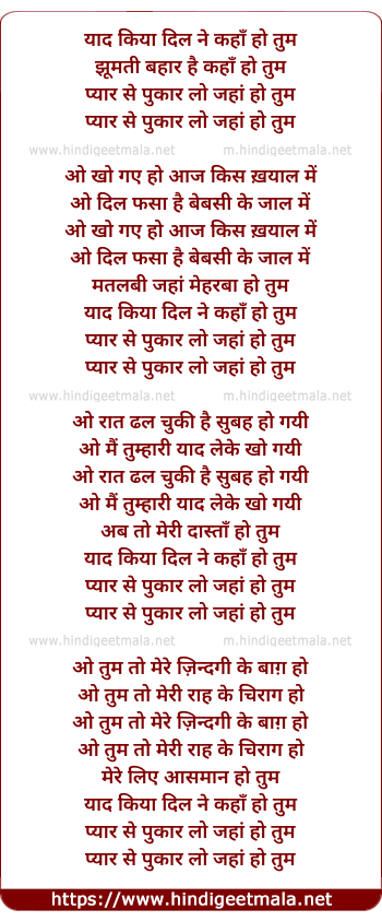 Lyrics of Yaad Kiyaa Dil Ne - याद किया दिल ने
