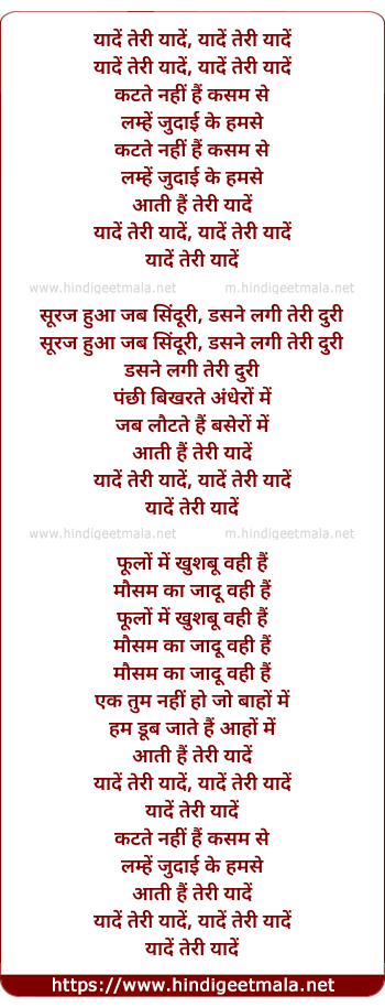 Lyrics of Yaade Teri Yaade (Sad) - यादें तेरी यादें
