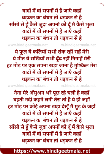 Lyrics of Yaadon Mein Vo Sapanon Men Hai - यादों में वो सपनों में है