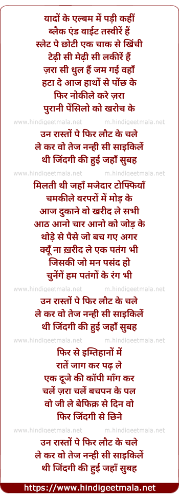 Lyrics of Yadon Ke Album Mein Padi Kahin - यादों के एल्बम में पड़ी कहीं