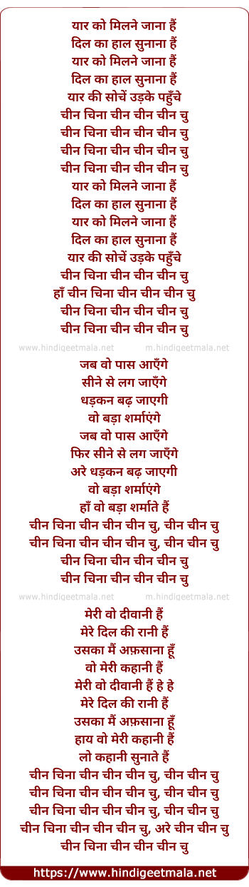 Lyrics of Yaar Ko Milne Janaa Hai - यार को मिलने जाना हैं