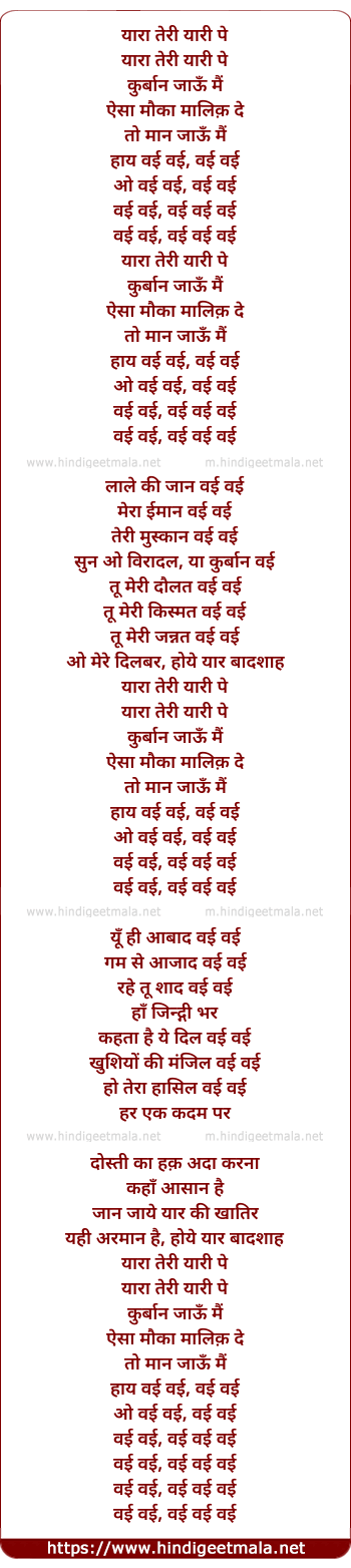 Lyrics of Yaara Teri Yaari (Sad) - यारा तेरी यारी पे