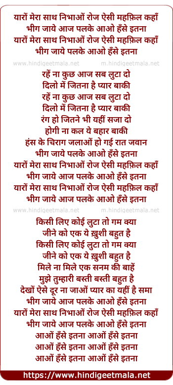 Lyrics of Yaaro Mera Saath Nibhao - यारों मेरा साथ निभाओं