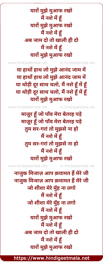 Lyrics of Yaaro Mujhe Muaf Rakho - यारों मुझे मुआफ रखो