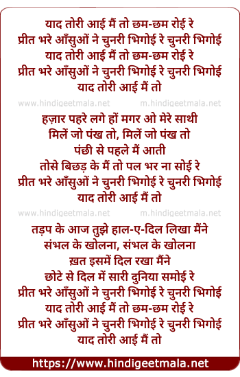 prit bhare aansuo ne chunari bhigoyi re chunari bhigoyi
