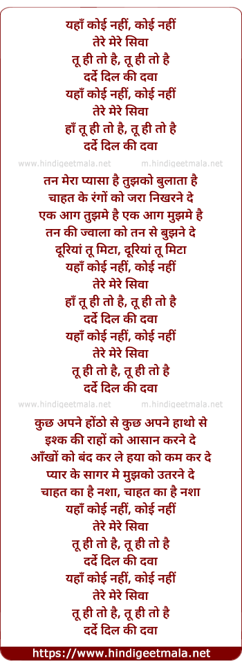 Lyrics of Yaha Koi Nahi - यहाँ कोई नहीं
