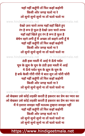 Lyrics of Yaha Nahi Kahungi To Kaha Kahogi - यहाँ नहीं कहूँगी तों फिर कहाँ कहोगी