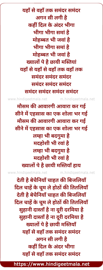 Lyrics of Yaha Se Vaha Tak Samandar - यहाँ से वहाँ तक समंदर