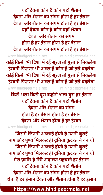 Lyrics of Yahan Devta Kaun Hai, Koun Yahan Shaitan - यहाँ देवता कौन है, कौन यहाँ शैतान