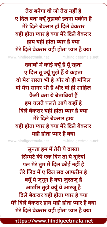 mere dile beqkar yahi hota pyar hai kya