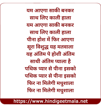 Lyrics of Yam Aayega Saqi Bankar - यम आएगा साकी बनकर
