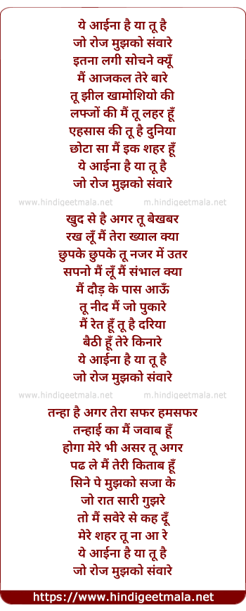 Lyrics of Ye Aaina Hai Ya Tu Hai - ये आईना है या तू है