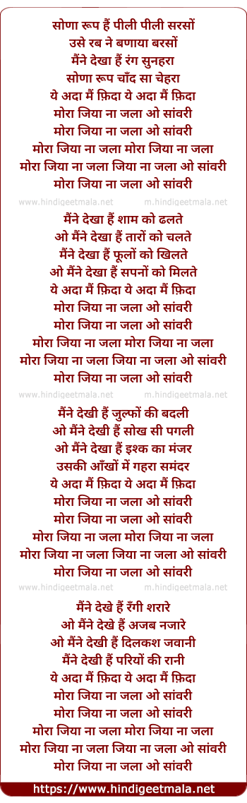 Lyrics of Ye Adaa - सोणा रूप हैं पीली पीली सरसों