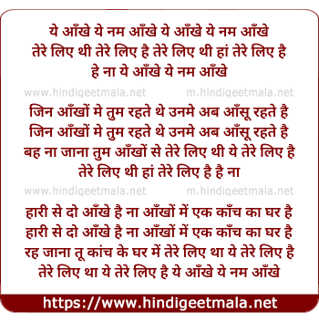 Lyrics of Ye Aankhe, Ye Num Ankhe - ये आँखे ये नम आँखे