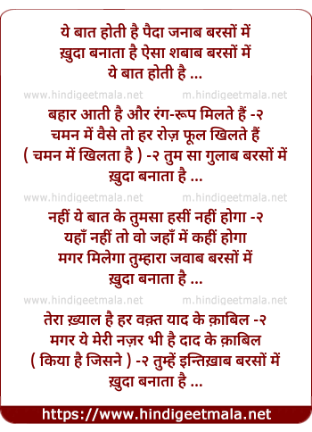 Lyrics of Ye Baat Hoti Hai Paida Janab - ये बात होती है पैदा जनाब