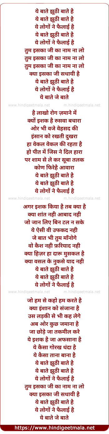 Lyrics of Ye Baate Jhoothi Baate Hai - ये बाते झूठी बाते है