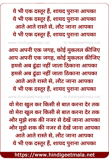 Lyrics of Ye Bhi Ik Dastoor Hai - ये भी एक दस्तूर हैं, शायद पुराना आपका