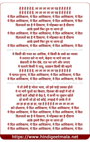 ye dil ashikana, ye dil ashikana, ye dil ashikana, ye dil