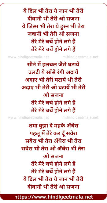 tere mere charche hone lage hai
