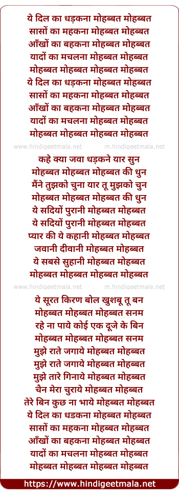 Lyrics of Ye Dil Ka Dhadak Na - ये दिल का धड़क ना