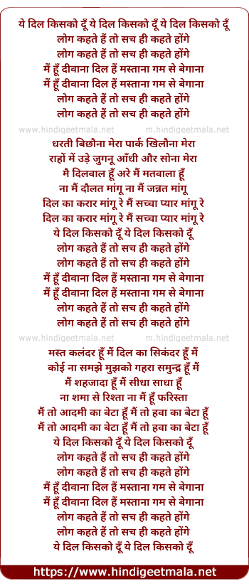Lyrics of Log Kehte Hai To Sach Hi Kehte Honge - लोग कहते हैं तो सच ही कहते होंगे