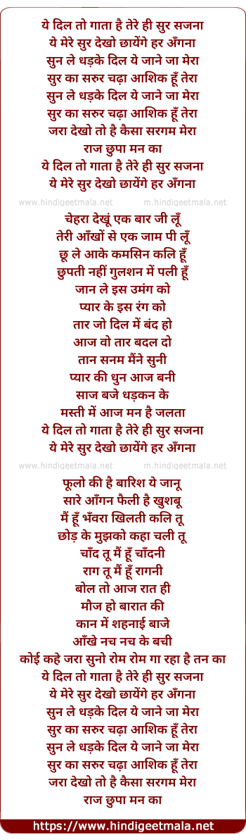 Lyrics of Ye Dil To Gata Hai - ये दिल तो गाता है