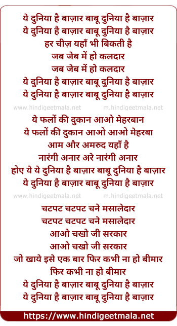 Lyrics of Ye Duniya Hai Bazar Babu Duniya Hai Bazar - ये दुनिया है बाज़ार बाबू दुनिया है बाज़ार