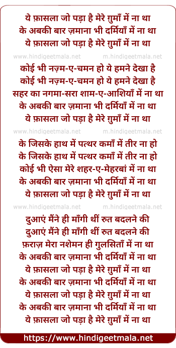 Lyrics of Ye Faasala Jo Pada Hai - ये फ़ासला जो पड़ा है मेरे ग़ुमाँ में ना था