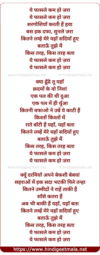 Lyrics of Ye Faasley - ये फासले कम हो ज़रा