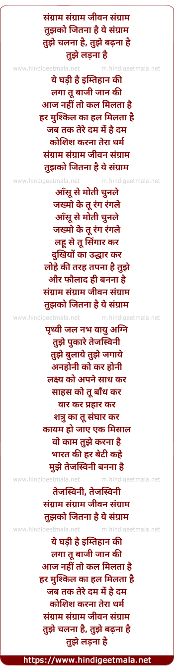 Lyrics of Ye Ghadi Hai Imtihan Ki - ये घड़ी है इम्तिहान की