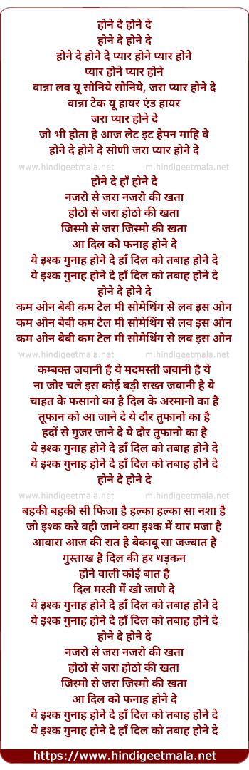 Lyrics of Ye Ishq Gunaah Hone De - ये इश्क गुनाह होने दे