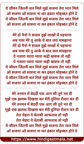 Lyrics of Ye Jiwan Jitni Baar Mile - ये जीवन जितनी बार मिले
